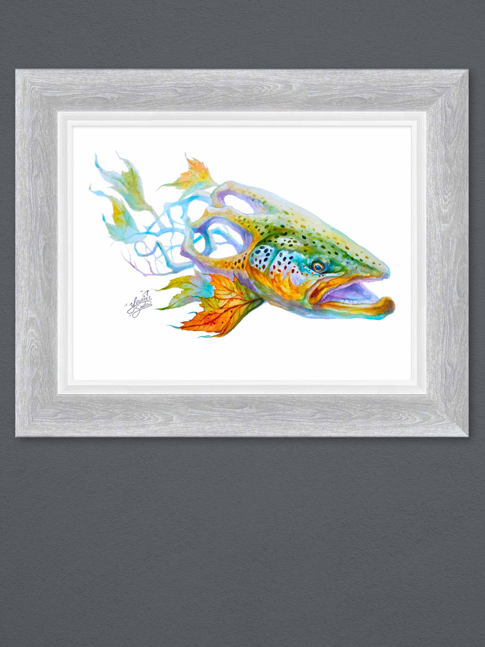 This paper print is inspired by one of my original watercolor paintings, which was created following a visit to the Northern Waters during the Fall. The print comes with the added convenience of free shipping and is elegantly framed in a soft, light gray frame that complements the artwork’s fall colors tones. It’s ready to hang and make a lovely addition to your home or office decor.